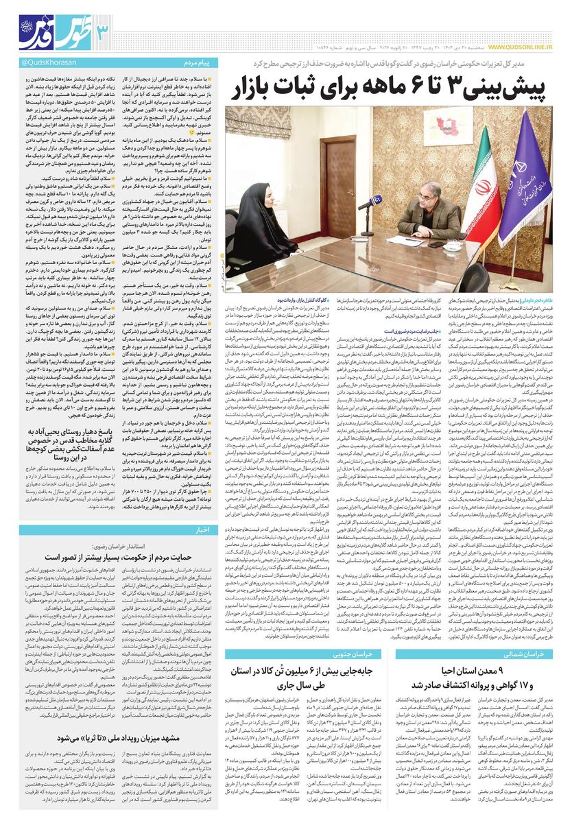 10846 - روزنامه قدس شماره ۱۰۸۴۶ - ۱۴۰۴-۱۰-۳۰