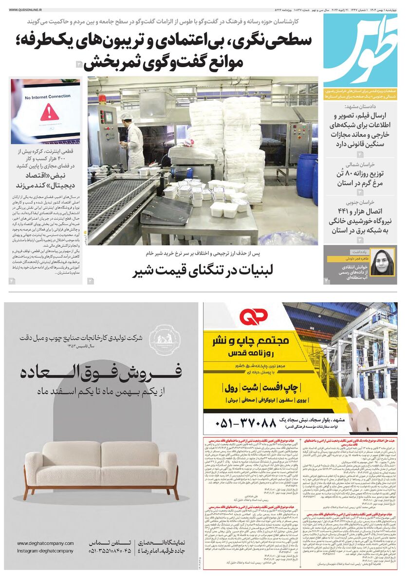 10847 - روزنامه قدس شماره ۱۰۸۴۷ - ۱۴۰۴-۱۱-۰۱