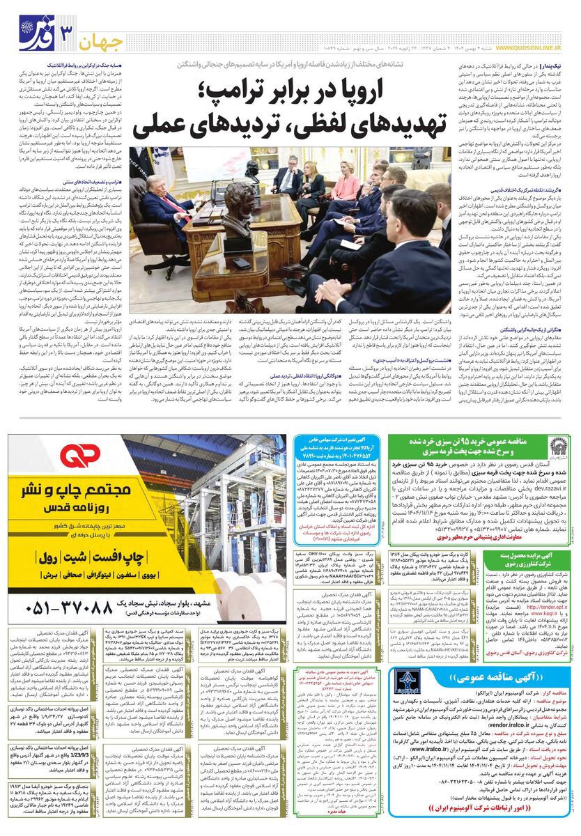 10849 - روزنامه قدس شماره ۱۰۸۴۹ - ۱۴۰۴-۱۱-۰۴