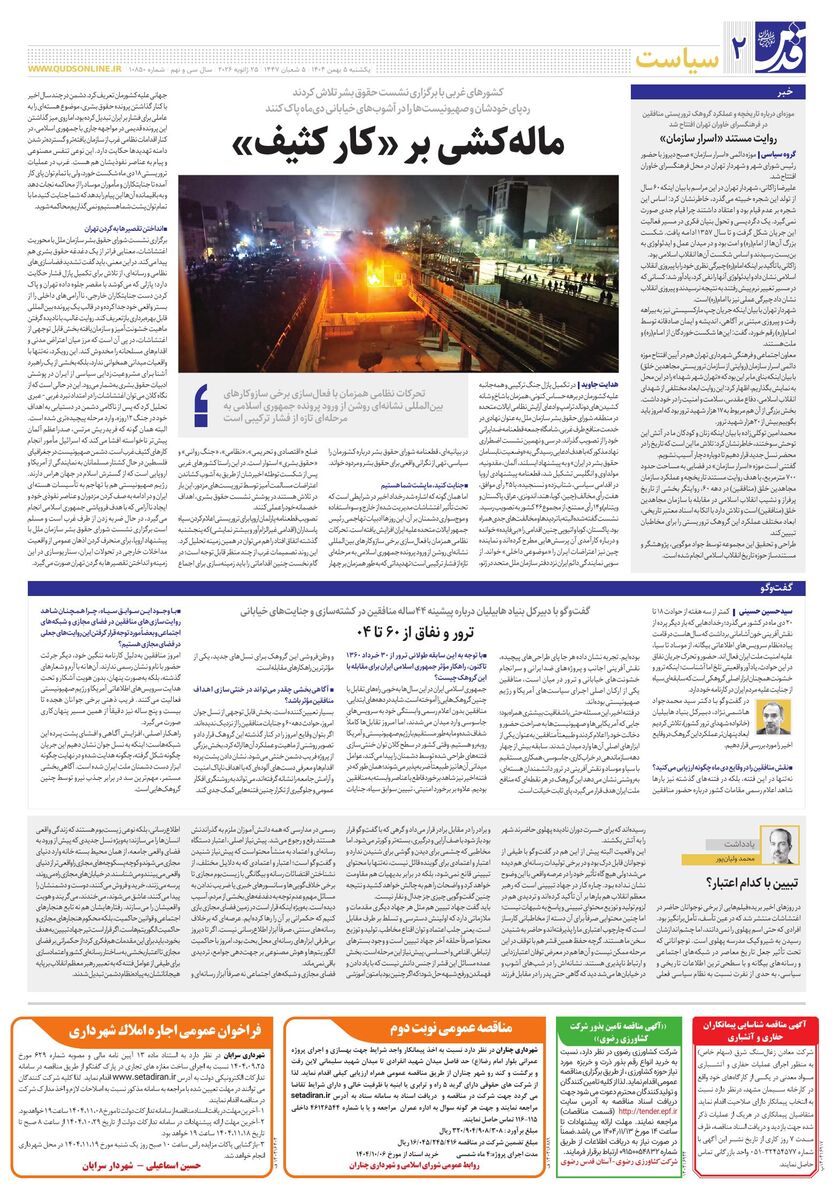 10850 - روزنامه قدس شماره ۱۰۸۵۰ - ۱۴۰۴-۱۱-۰۵