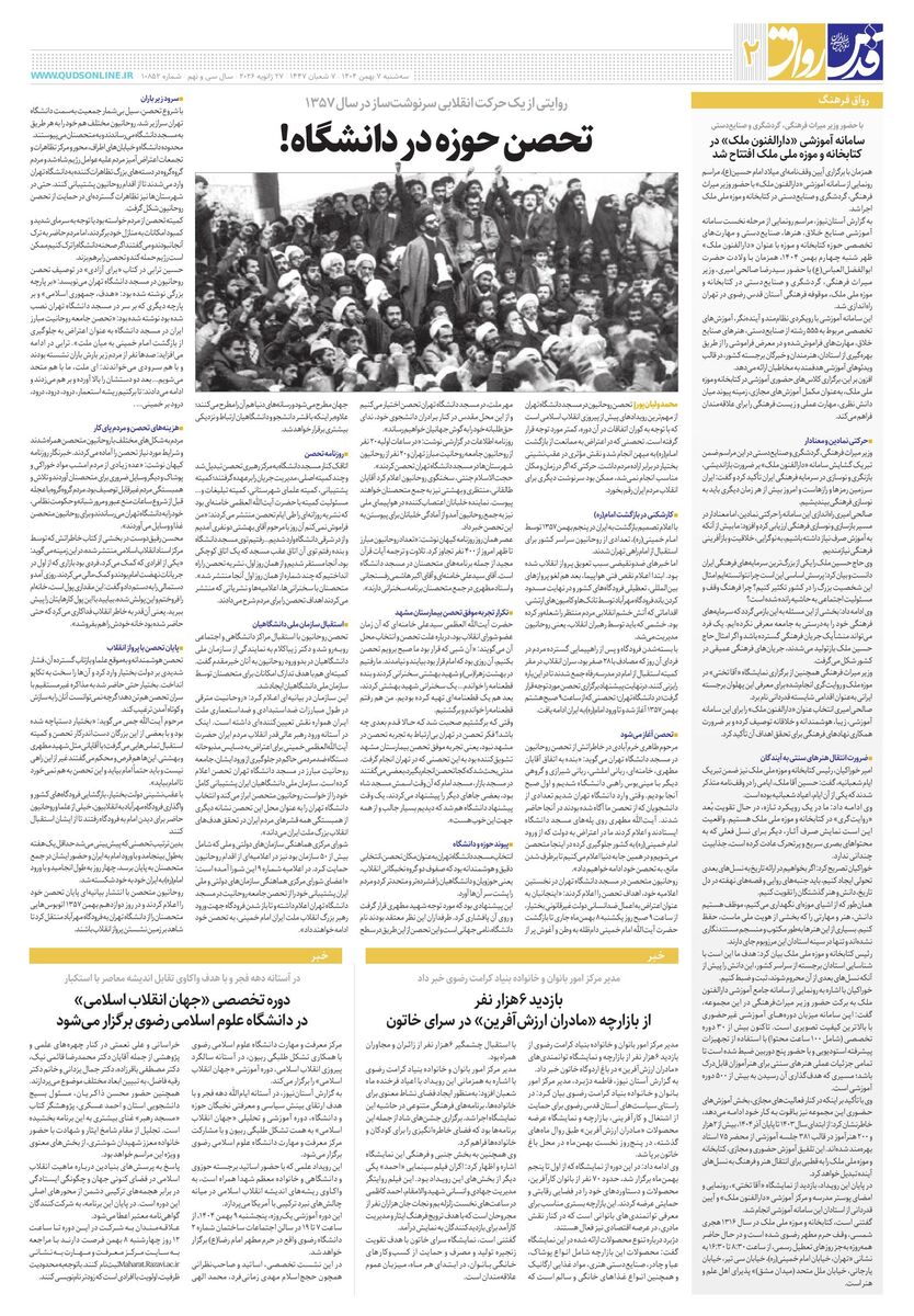 10852 - روزنامه قدس شماره ۱۰۸۵۲ - ۱۴۰۴-۱۱-۰۷