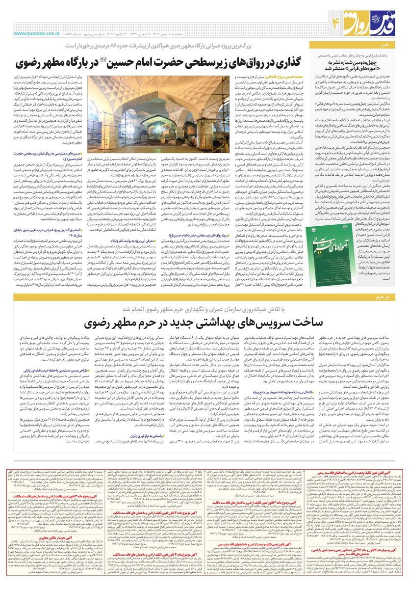 10852 - روزنامه قدس شماره ۱۰۸۵۲ - ۱۴۰۴-۱۱-۰۷