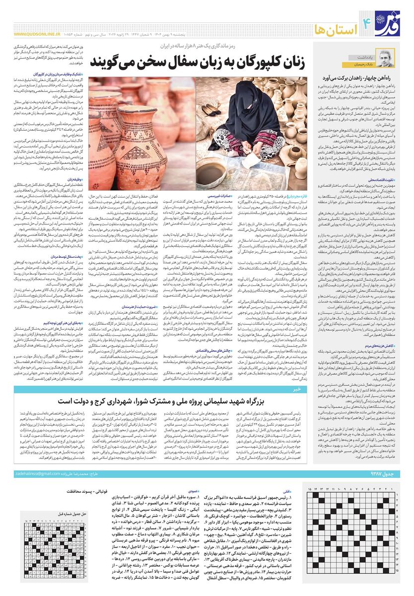 10854 - روزنامه قدس شماره ۱۰۸۵۴ - ۱۴۰۴-۱۱-۰۹