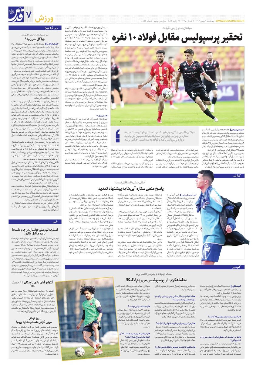 10854 - روزنامه قدس شماره ۱۰۸۵۴ - ۱۴۰۴-۱۱-۰۹