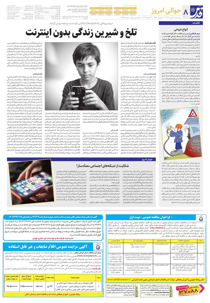 10854 - روزنامه قدس شماره ۱۰۸۵۴ - ۱۴۰۴-۱۱-۰۹