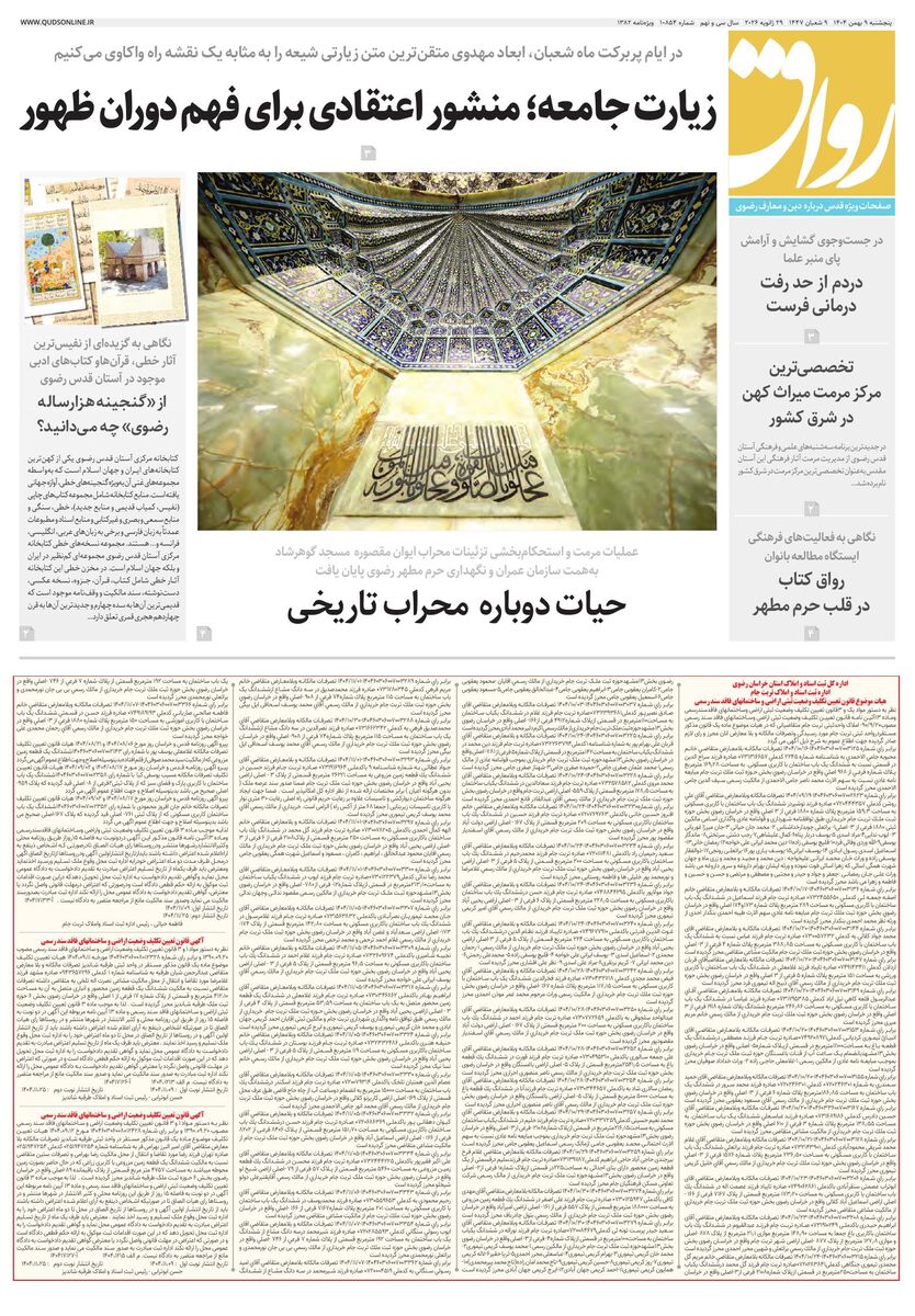 10854 - روزنامه قدس شماره ۱۰۸۵۴ - ۱۴۰۴-۱۱-۰۹