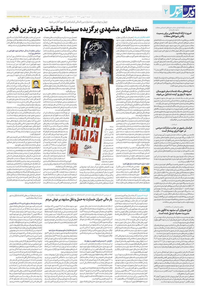 10855 - روزنامه قدس شماره ۱۰۸55 - ۱۴۰۴-۱۱-۱۱