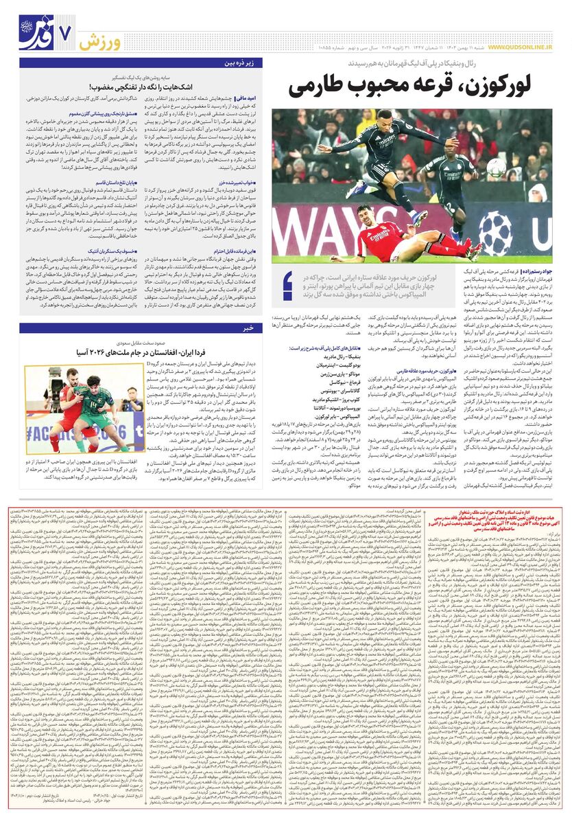 10855 - روزنامه قدس شماره ۱۰۸55 - ۱۴۰۴-۱۱-۱۱
