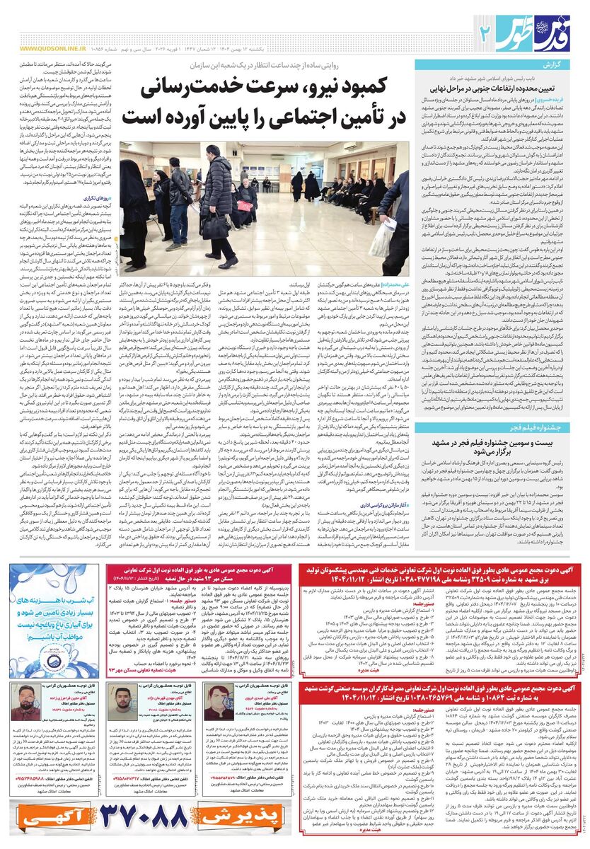 10856 - روزنامه قدس شماره ۱۰۸۵۶ - ۱۴۰۴-۱۱-۱۲