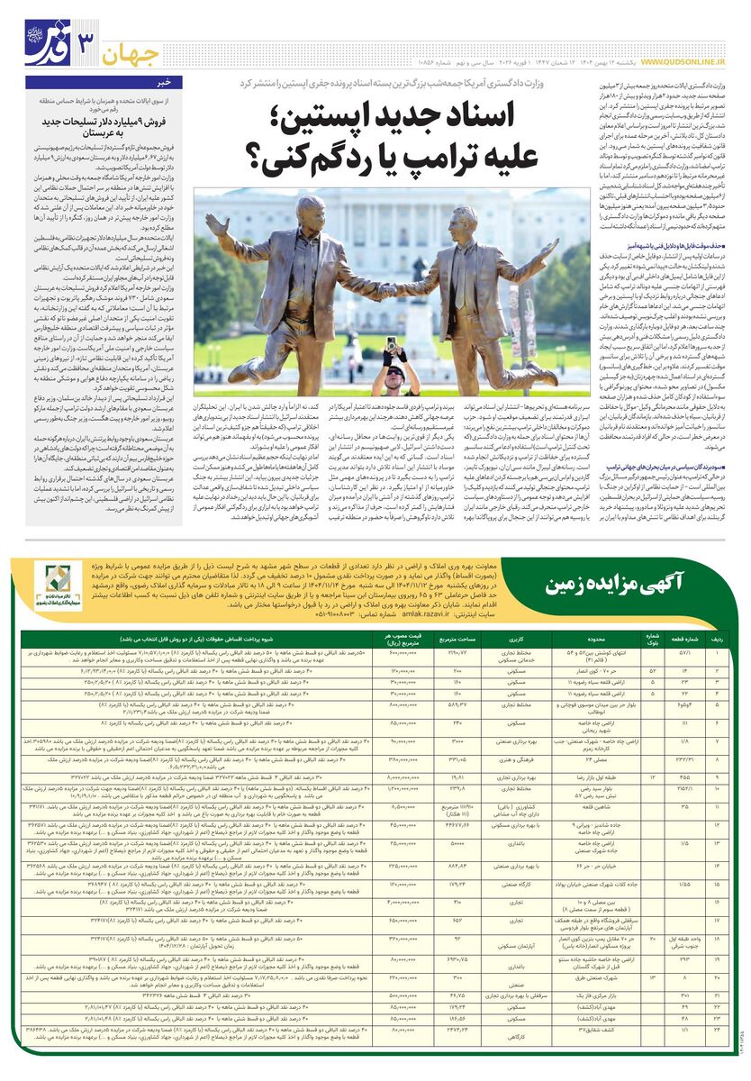 10856 - روزنامه قدس شماره ۱۰۸۵۶ - ۱۴۰۴-۱۱-۱۲