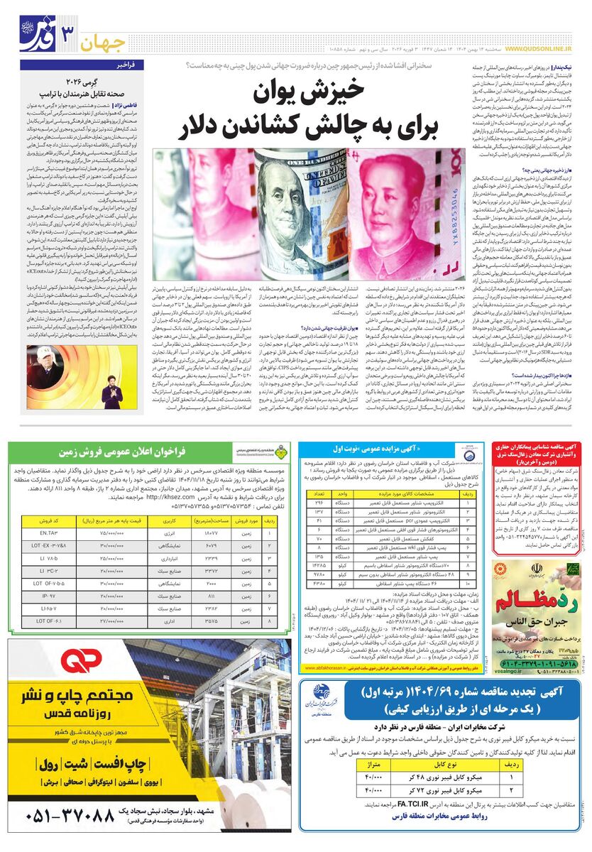 10858 - روزنامه قدس شماره ۱۰۸۵۸ - ۱۴۰۴-۱۱-۱۴