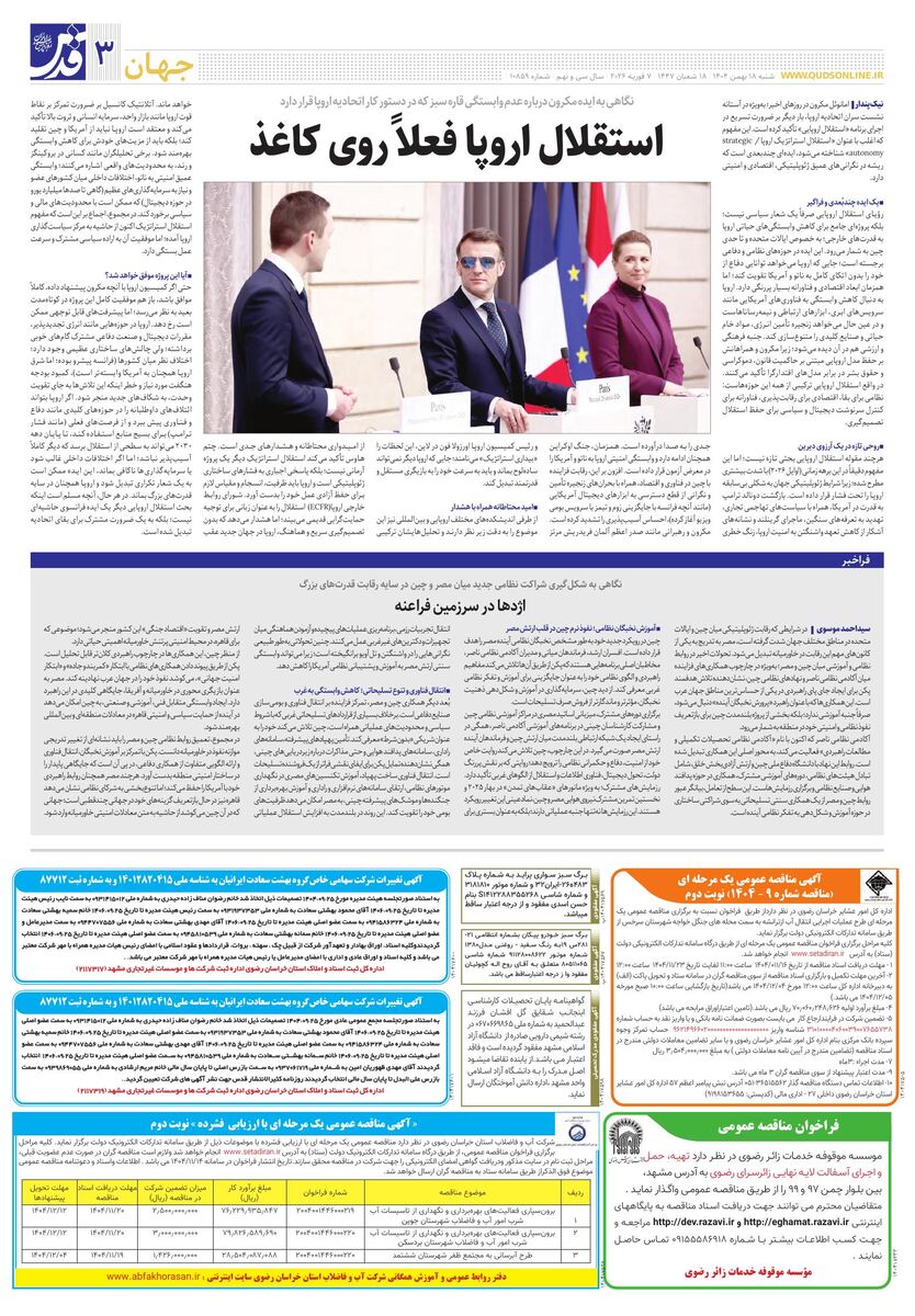 10859 - روزنامه قدس شماره ۱۰۸۵۹ - ۱۴۰۴-۱۱-۱۸