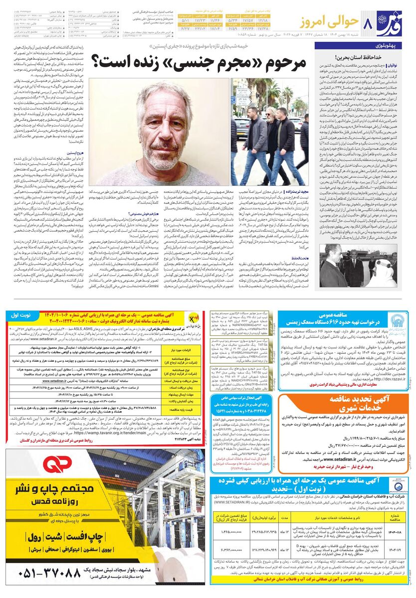 10859 - روزنامه قدس شماره ۱۰۸۵۹ - ۱۴۰۴-۱۱-۱۸