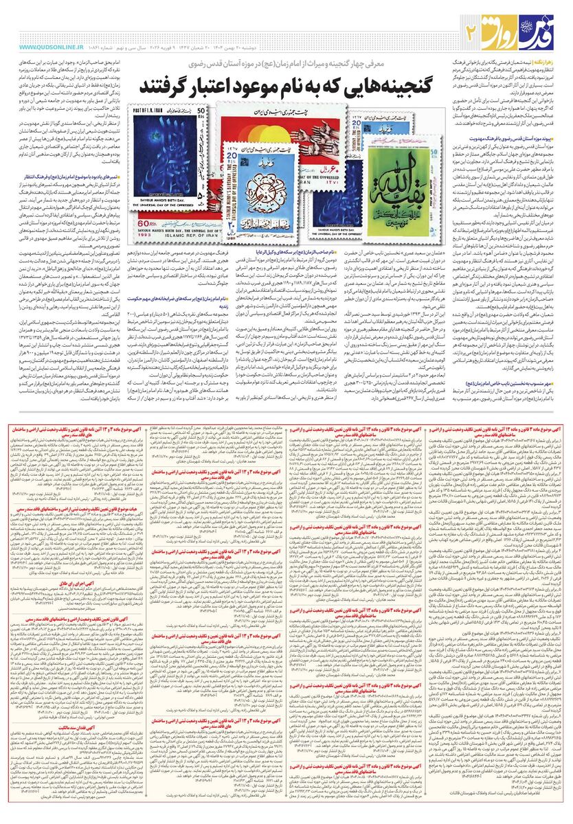 10861 - روزنامه قدس شماره ۱۰۸۶۱ - ۱۴۰۴-۱۱-۲۰