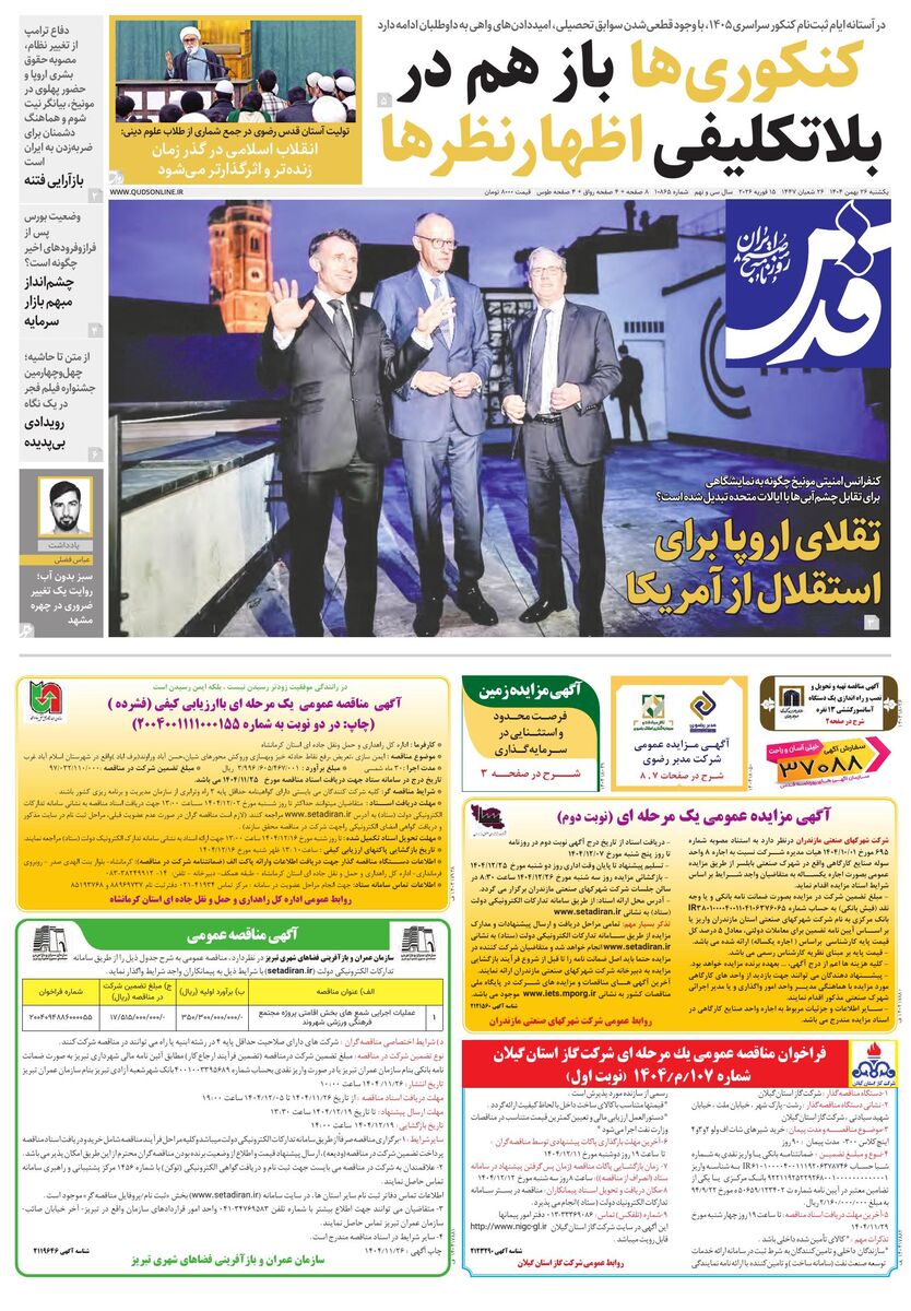 10865 - روزنامه قدس شماره ۱۰۸۶۵ - ۱۴۰۴-۱۱-۲۶