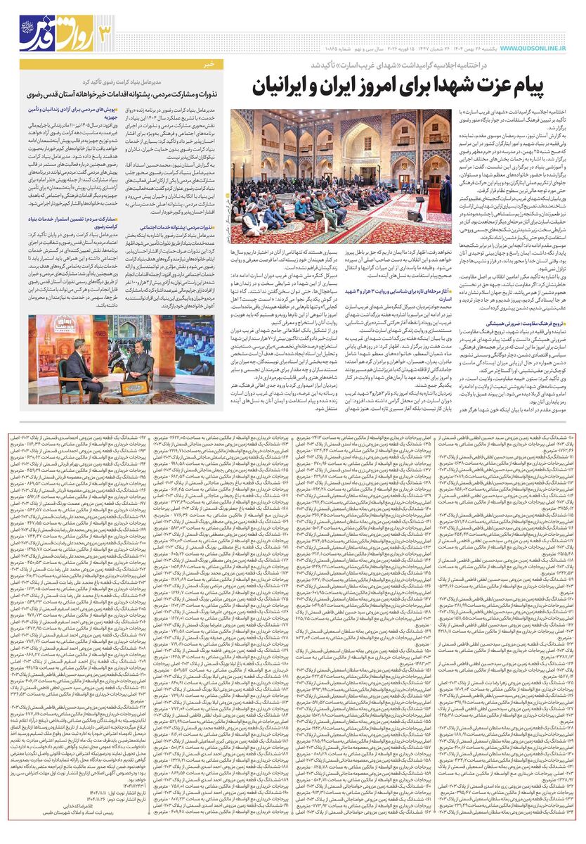 10865 - روزنامه قدس شماره ۱۰۸۶۵ - ۱۴۰۴-۱۱-۲۶