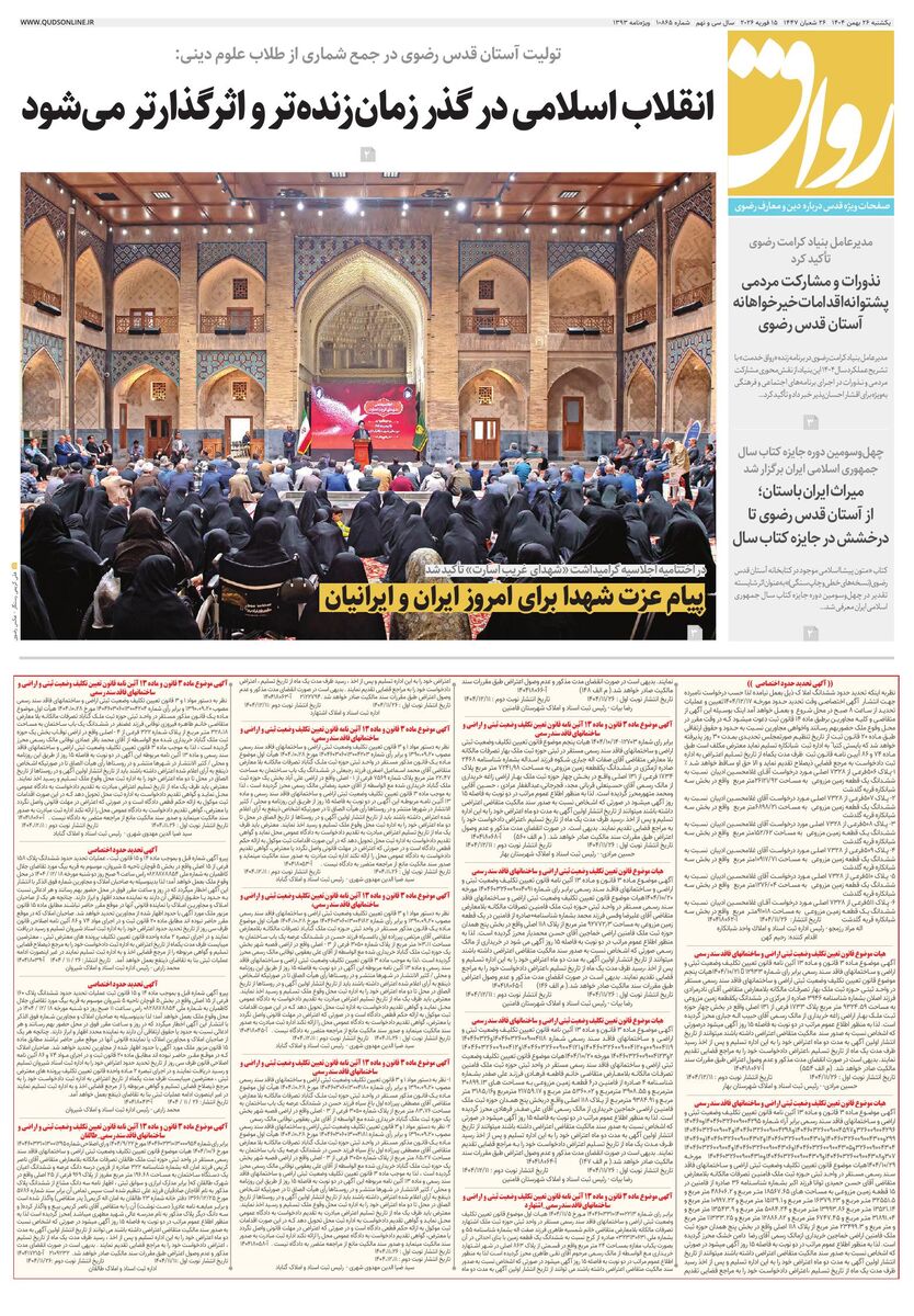 10865 - روزنامه قدس شماره ۱۰۸۶۵ - ۱۴۰۴-۱۱-۲۶