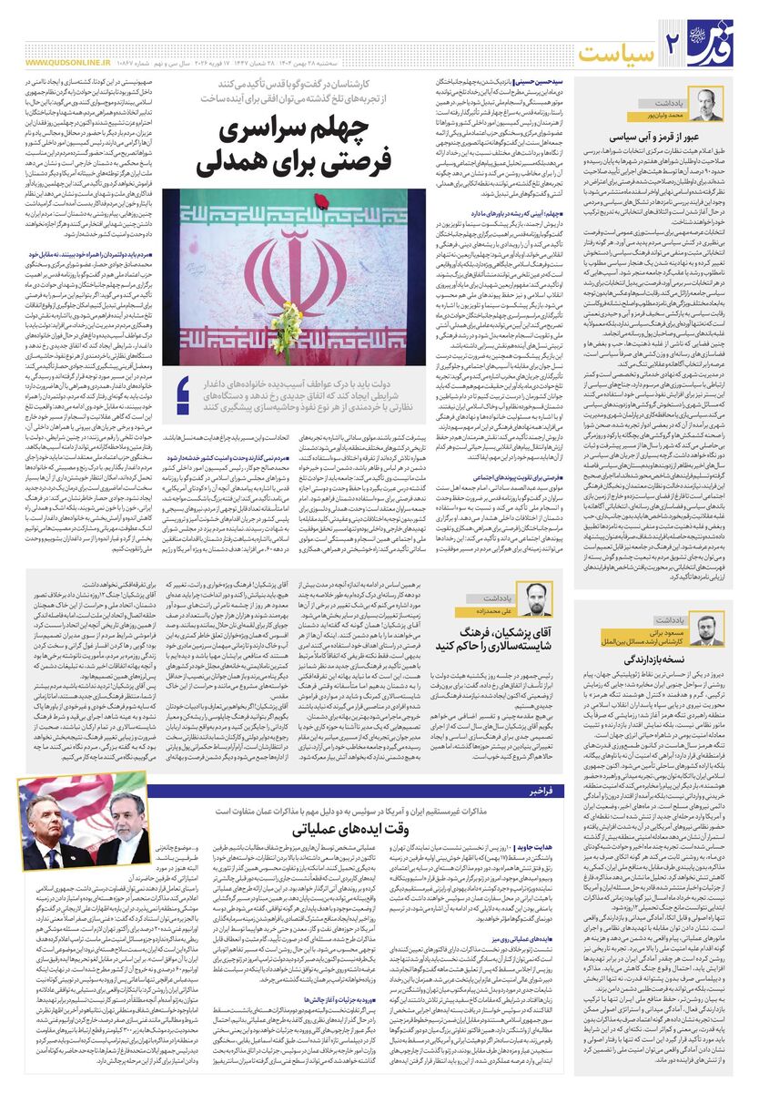 10867 - روزنامه قدس شماره ۱۰۸۶۷ - ۱۴۰۴-۱۱-۲۸