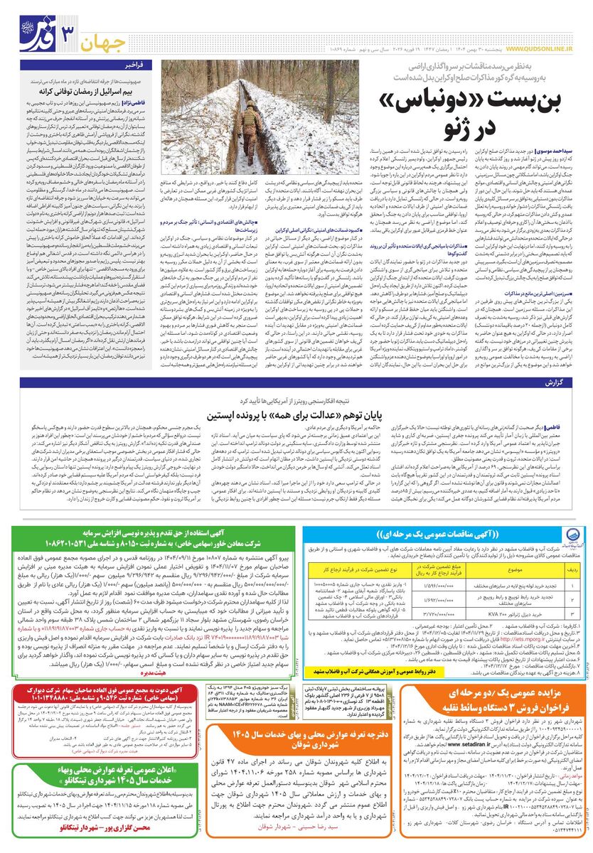 10869 - روزنامه قدس شماره ۱۰۸۶۹ - ۱۴۰۴-۱۱-۳۰