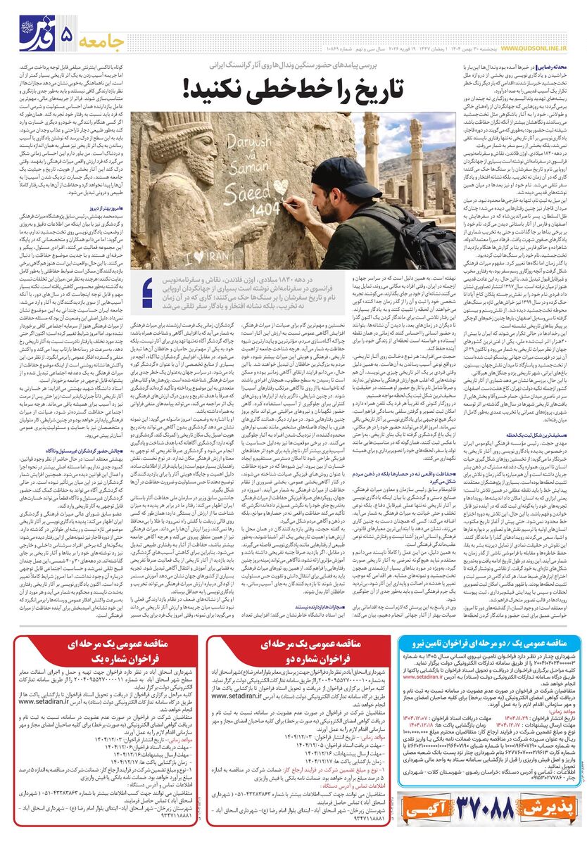 10869 - روزنامه قدس شماره ۱۰۸۶۹ - ۱۴۰۴-۱۱-۳۰