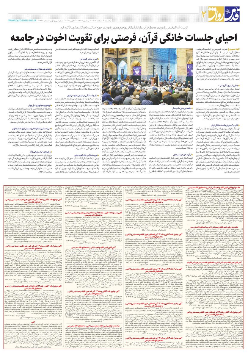 10871 - روزنامه قدس شماره ۱۰۸۷1 - ۱۴۰۴-۱۲-۰۳