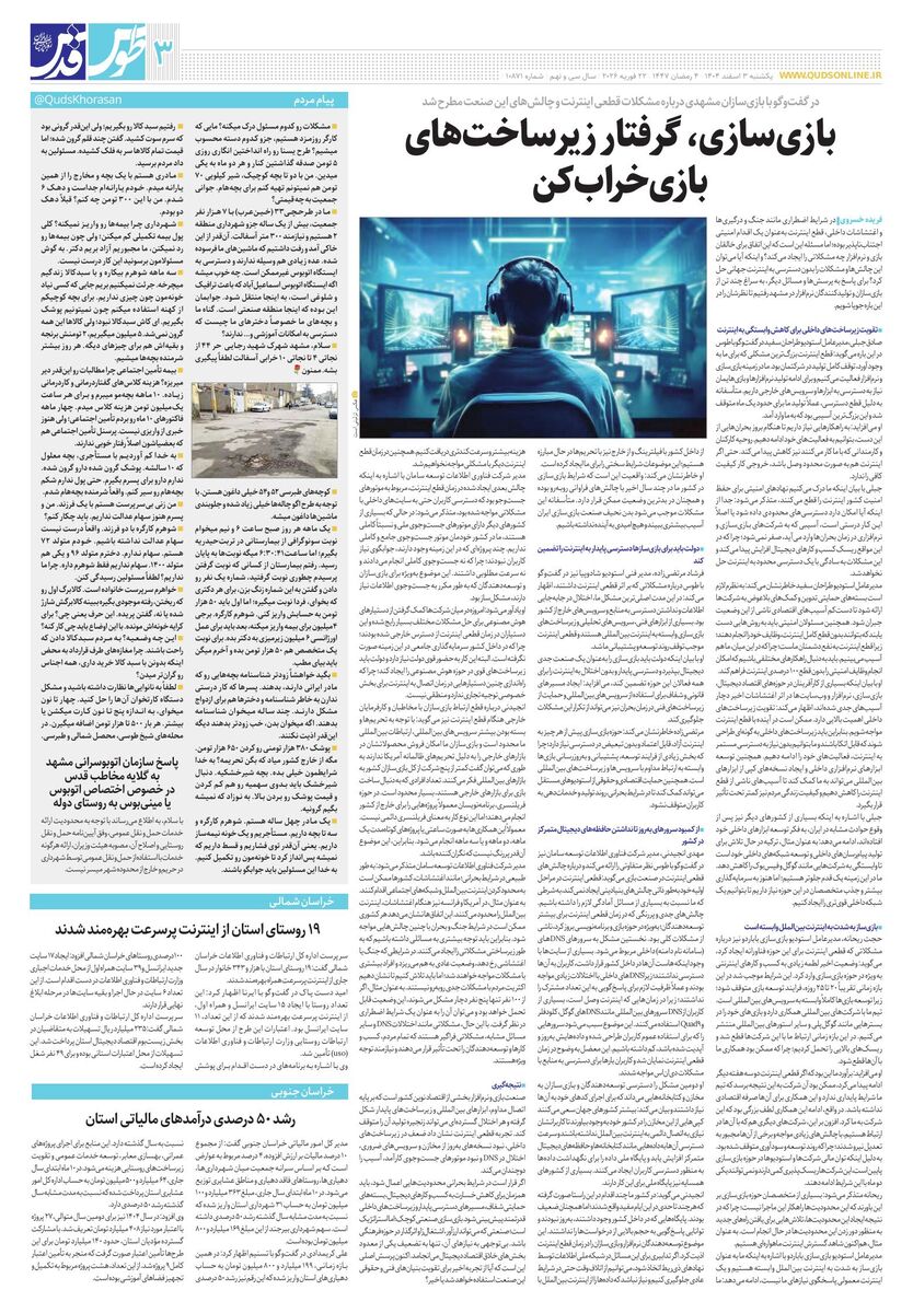 10871 - روزنامه قدس شماره ۱۰۸۷1 - ۱۴۰۴-۱۲-۰۳