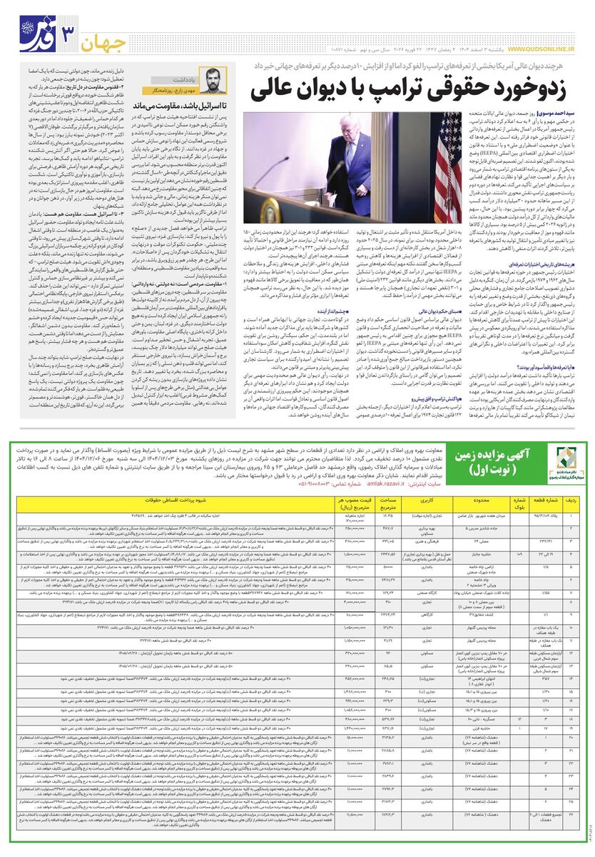 10871 - روزنامه قدس شماره ۱۰۸۷1 - ۱۴۰۴-۱۲-۰۳