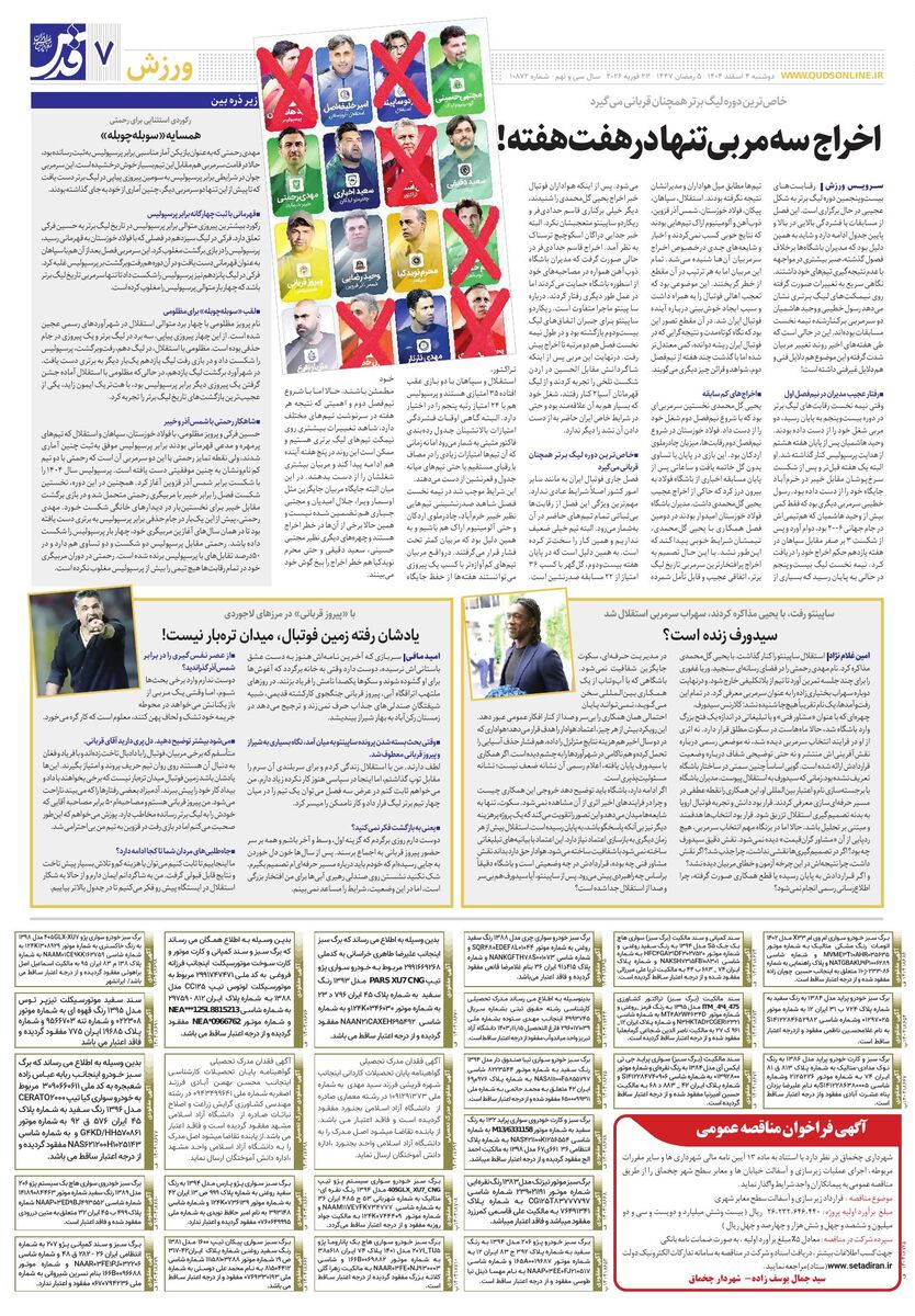 10872 - روزنامه قدس شماره ۱۰۸۷2 - ۱۴۰۴-۱۲-۰۴