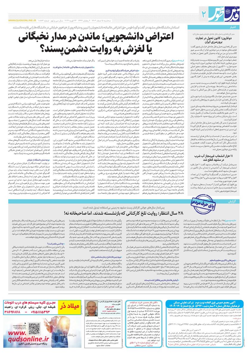 10873 - روزنامه قدس شماره 10873 - ۱۴۰۴-۱۲-۰۵