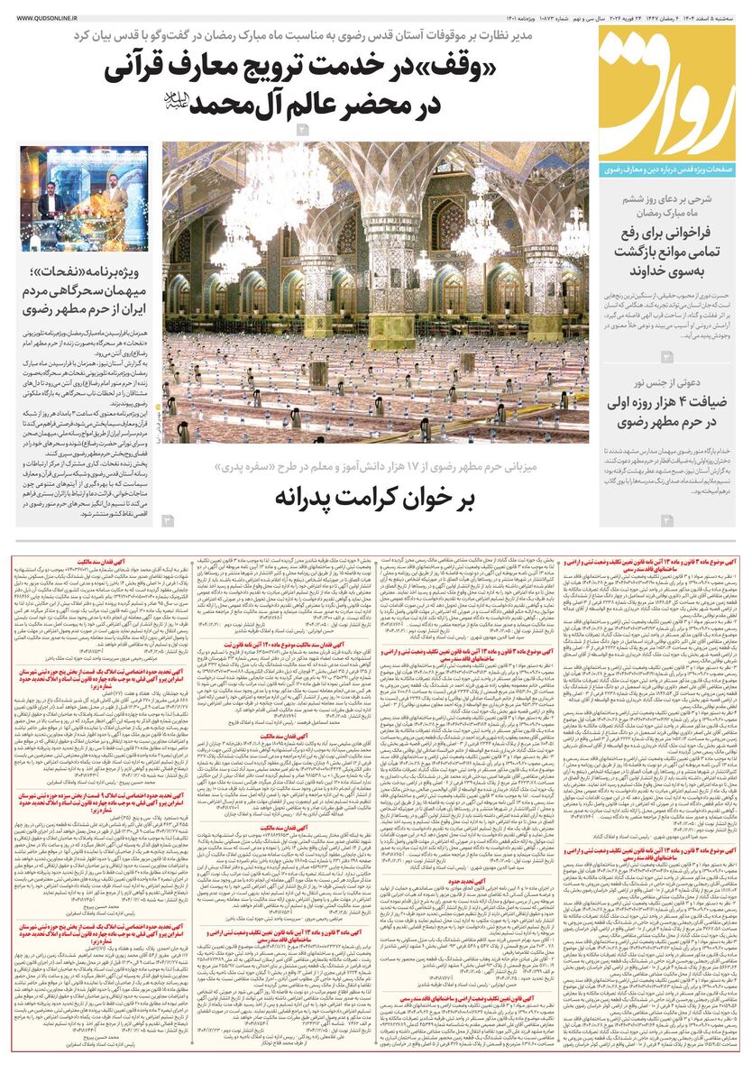10873 - روزنامه قدس شماره 10873 - ۱۴۰۴-۱۲-۰۵