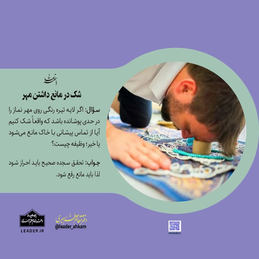 در این میان، گاهی مواردی پیش می‌آید که تشخیص وجود یا عدم وجود مانع، به راحتی ممکن نیست. مسئله‌ی «لایه‌ی تیره‌رنگ روی مهر» از جمله این موارد مبهم و در عین حال، شایع است. حضرت آیت‌الله خامنه‌ای به استفتائی با این موضوع پاسخ داده است که تقدیم حضور علاقه‌مندان می‌گردد.
