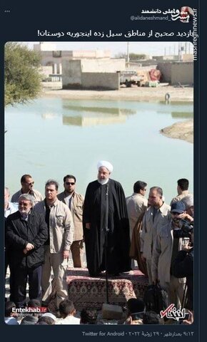 یک فعال رسانه ای با انتشار تصویر زیر در توئیتر نوشت: بازدید صحیح از مناطق سیل زده اینجوریه دوستان!