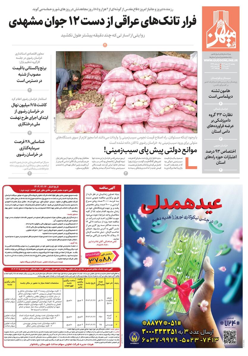 ۱۶ اسفند ۱۴۰۳ - ۰۱:۲۷ کد خبر ۱۰۵۴۰۸۹ دریافت تصاویر قدس میهن شماره ۱۰۶۰۱ mihan.pdf ۱۶ اسفند شماره ۱۰۶۰۱ حرم مطهر رضوی کاظمین کربلا مسجدالنبی مسجدالحرام حرم حضرت معصومه