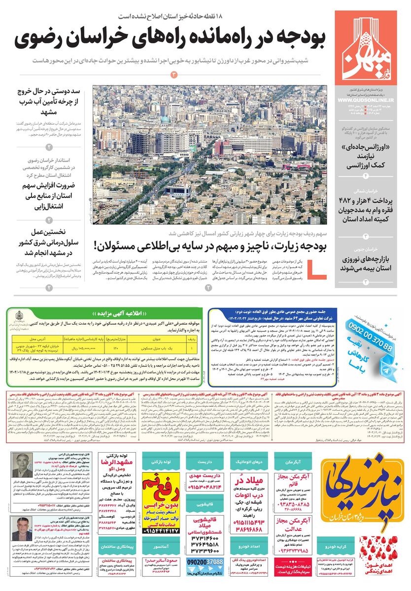۲۲ اسفند ۱۴۰۳ - ۰۲:۱۷ کد خبر ۱۰۵۵۴۵۶ دریافت تصاویر قدس میهن شماره ۱۰۶۰۶ mihan.pdf ۲۲ اسفند شماره ۱۰۶۰۶ حرم مطهر رضوی کاظمین کربلا مسجدالنبی مسجدالحرام حرم حضرت معصومه
