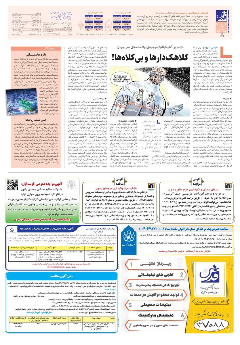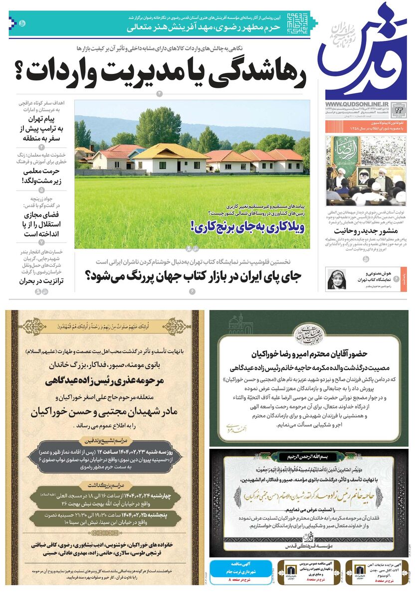 ۲۳ اردیبهشت ۱۴۰۴ - ۰۱:۰۹ کد خبر ۱۰۶۷۴۷۲ دریافت تصاویر روزنامه قدس شماره ۱۰۶۴۴ roozname.pdf ۲۳ اردیبهشت شماره ۱۰۶۴۴ حرم مطهر رضوی کاظمین کربلا مسجدالنبی مسجدالحرام حرم حضرت معصومه