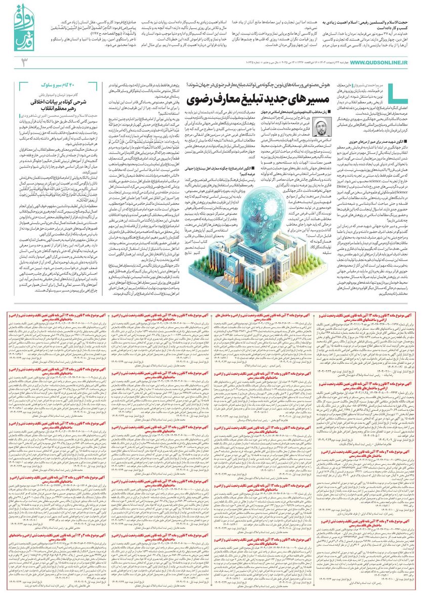 ۲۴ اردیبهشت ۱۴۰۴ - ۰۲:۲۲ کد خبر ۱۰۶۷۷۲۷ دریافت تصاویر قدس رواق شماره ۱۰۶۴۵ ravagh.pdf ۲۴ اردیبهشت شماره ۱۰۶۴۵ حرم مطهر رضوی کاظمین کربلا مسجدالنبی مسجدالحرام حرم حضرت معصومه