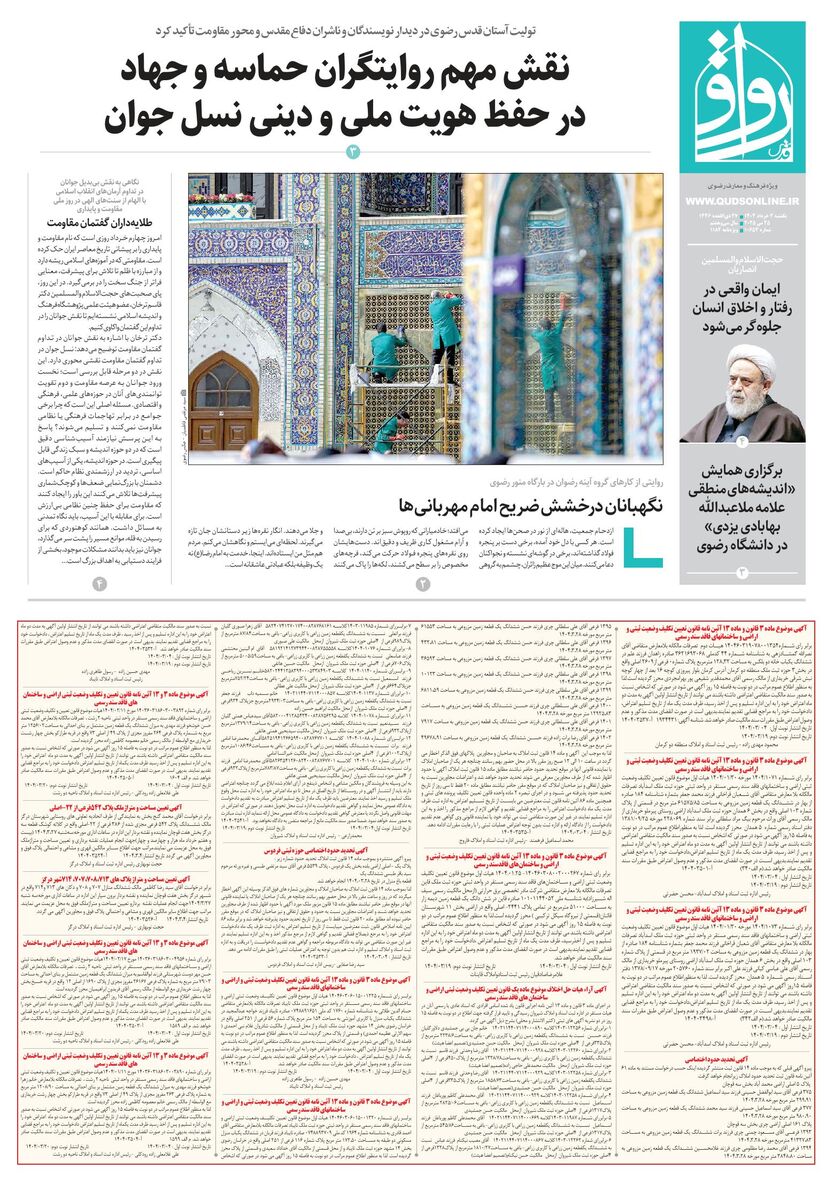 ۴ خرداد ۱۴۰۴ - ۰۱:۵۳ کد خبر ۱۰۷۰۰۱۱ دریافت تصاویر قدس رواق شماره ۱۰۶۵۴ ravagh.pdf ۴ خرداد شماره ۱۰۶۵۴ حرم مطهر رضوی کاظمین کربلا مسجدالنبی مسجدالحرام حرم حضرت معصومه