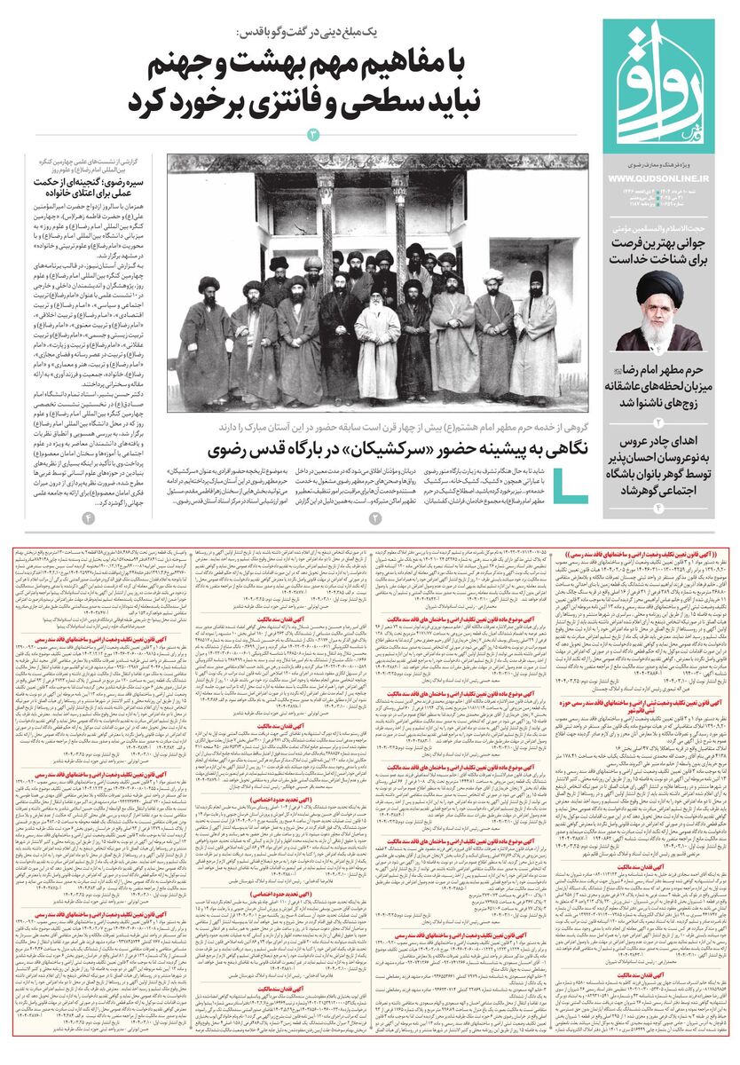 ۱۰ خرداد ۱۴۰۴ - ۰۵:۴۵ کد خبر ۱۰۷۱۱۲۸ دریافت تصاویر قدس رواق شماره ۱۰۶۵۹ ravagh.pdf ۱۰ خرداد شماره ۱۰۶۵۹ حرم مطهر رضوی کاظمین کربلا مسجدالنبی مسجدالحرام حرم حضرت معصومه