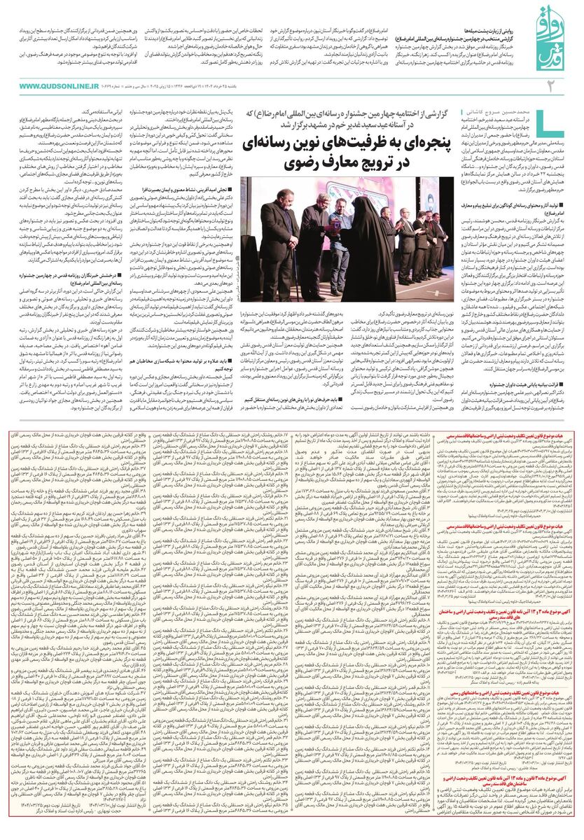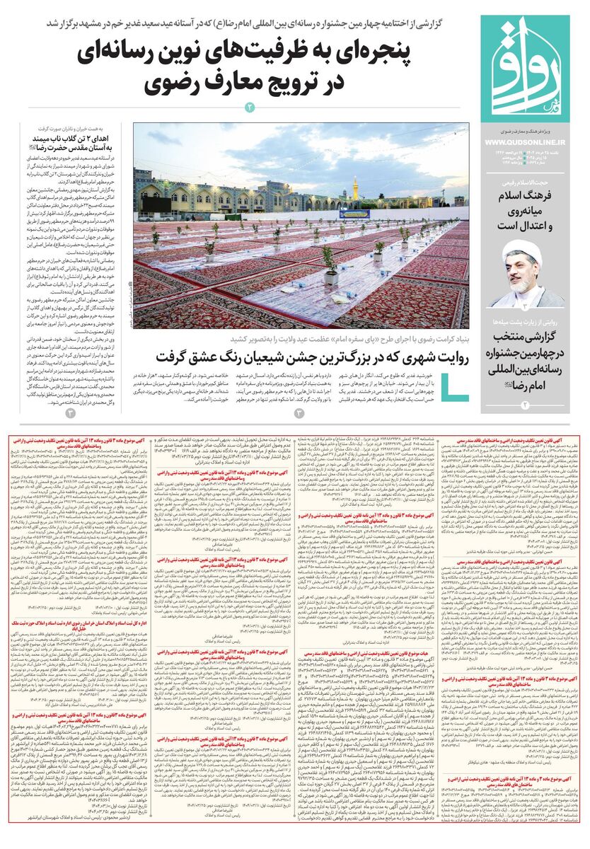 ۲۵ خرداد ۱۴۰۴ - ۰۰:۵۴ کد خبر ۱۰۷۴۱۷۰ دریافت تصاویر قدس رواق شماره ۱۰۶۶۹ ravagh.pdf ۲۵ خرداد شماره ۱۰۶۶۹ حرم مطهر رضوی کاظمین کربلا مسجدالنبی مسجدالحرام حرم حضرت معصومه