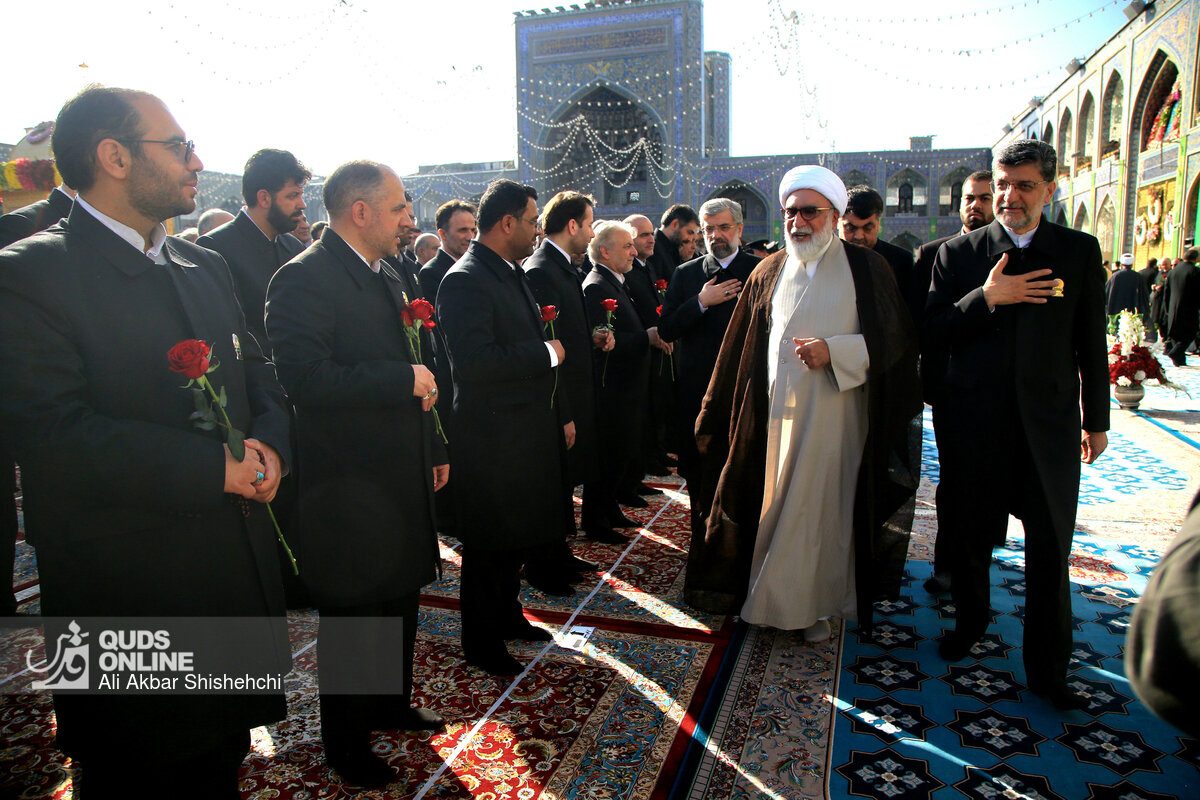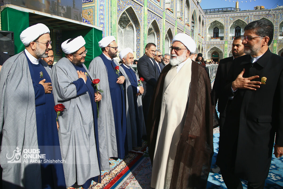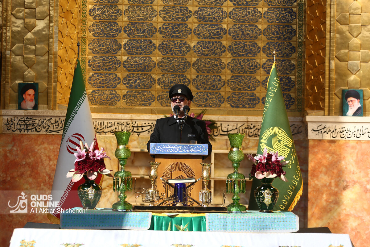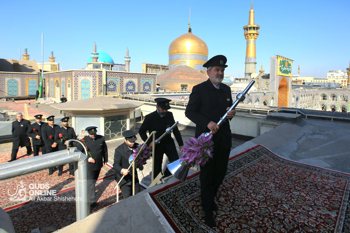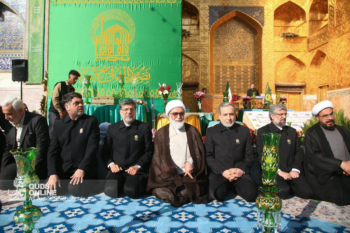 مراسم خطبه خوانی و تعویض پرچم گنبد حرم مطهر رضوی، صبح جمعه ۱۹ اردیبهشت ۱۴۰۴، به مناسبت میلاد با سعادت حضرت رضا (ع)، با حضور آیت الله مروی تولیت آستان قدس رضوی، سید عباس عراقچی وزیر امور خارجه کشورمان، خدام، زائران و مجاوران در حرم مطهر رضوی برگزار شد