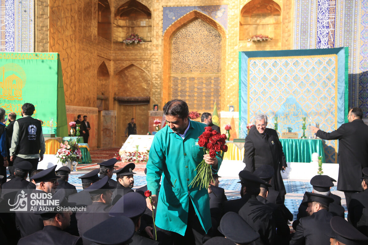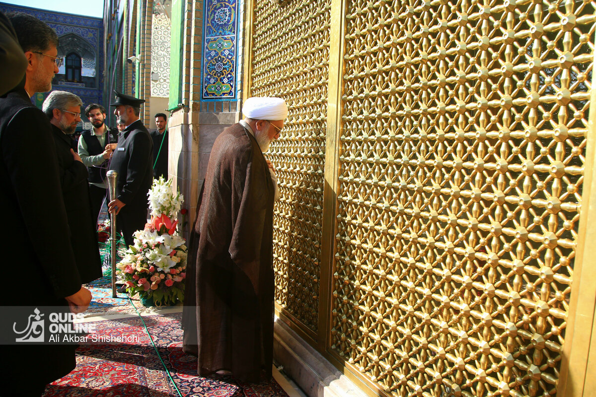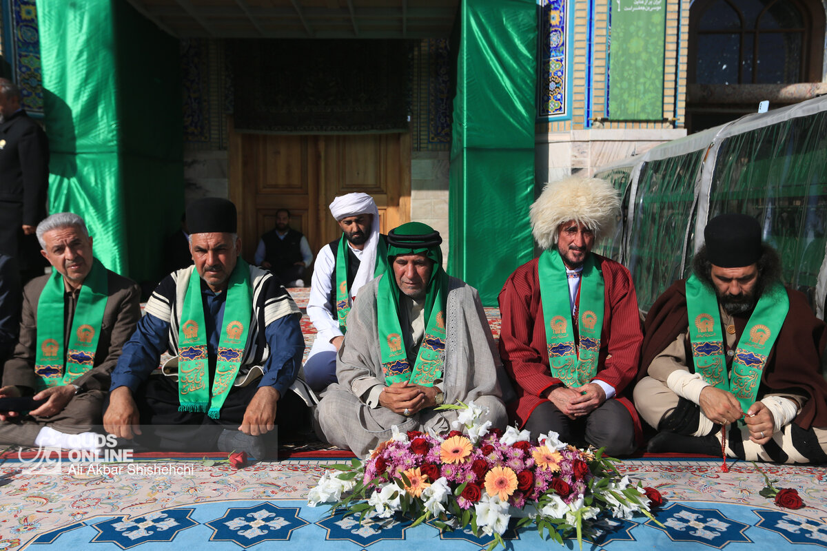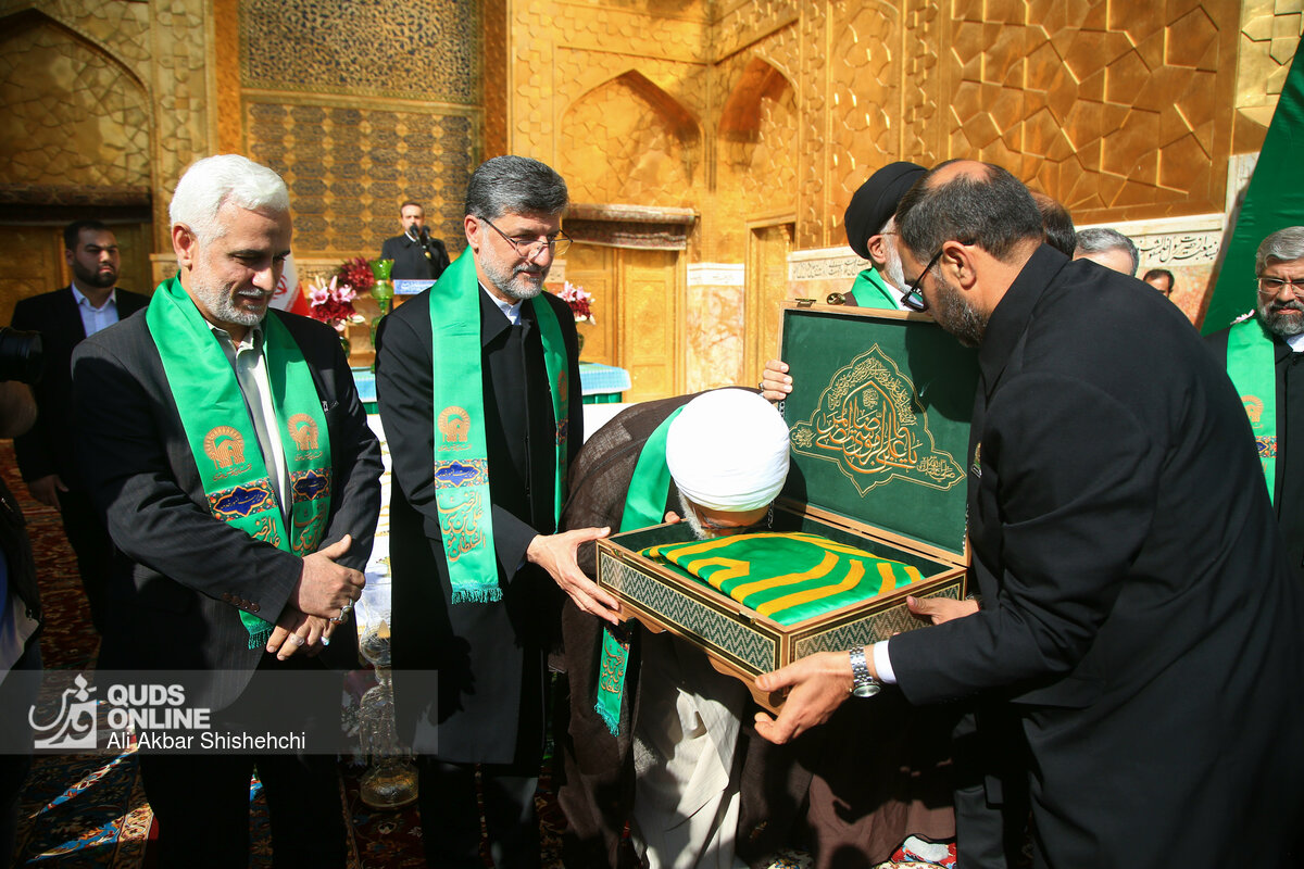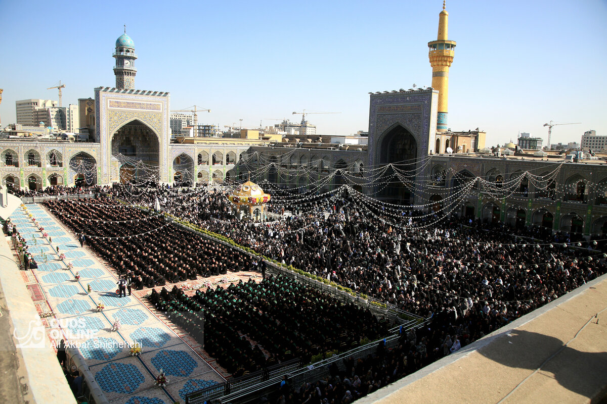 مراسم خطبه خوانی و تعویض پرچم گنبد حرم مطهر رضوی، صبح جمعه ۱۹ اردیبهشت ۱۴۰۴، به مناسبت میلاد با سعادت حضرت رضا (ع)، با حضور آیت الله مروی تولیت آستان قدس رضوی، سید عباس عراقچی وزیر امور خارجه کشورمان، خدام، زائران و مجاوران در حرم مطهر رضوی برگزار شد