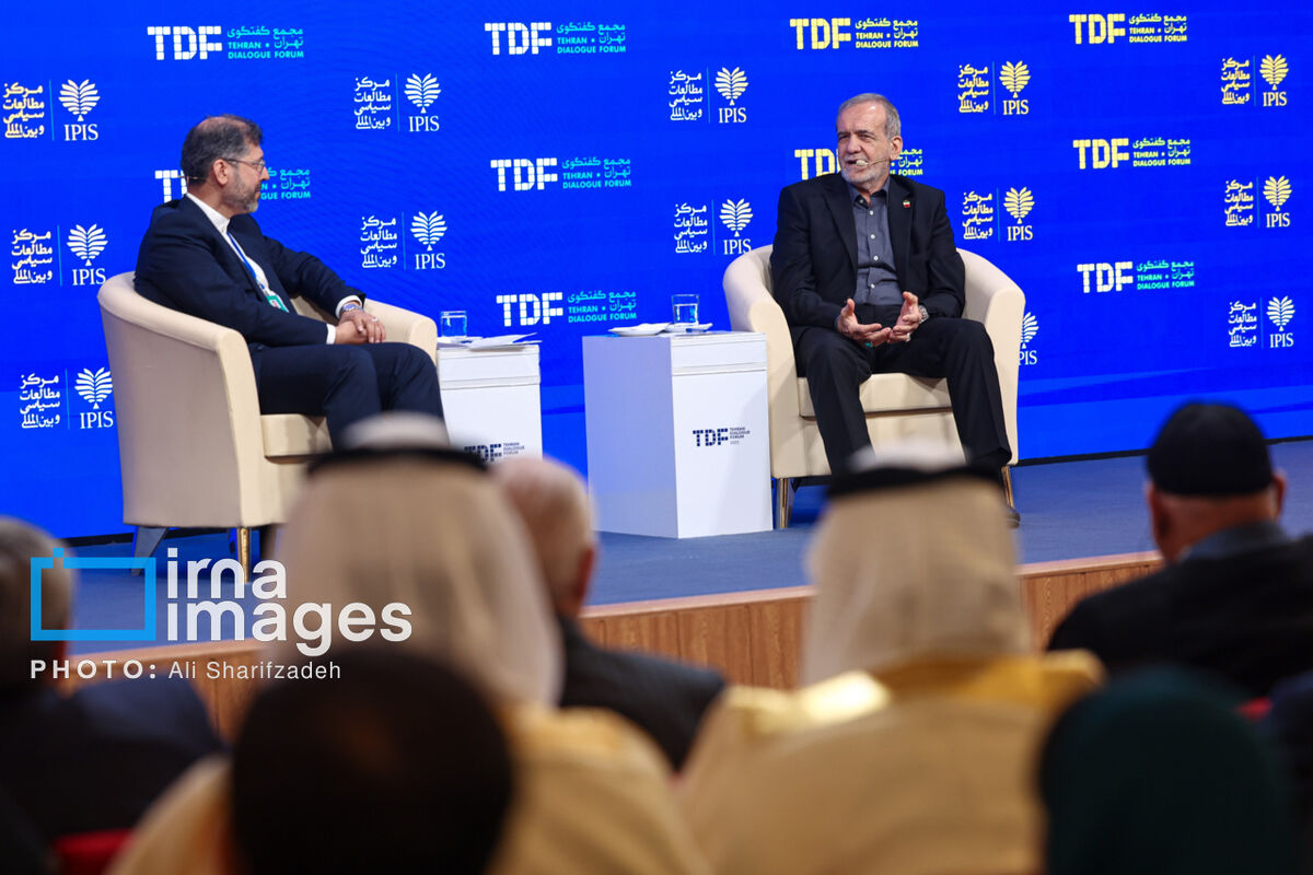 آغاز به کار «مجمع گفتگوی تهران» (Tehran Dialogue Forum) یکشنبه (۲۸ اردیبهشت ۱۴۰۴) با حضور «مسعود پزشکیان» رئیسجمهور و «سید عباس عراقچی» وزیر امور خارجه و مقامات عالیرتبه از کشورهای مختلف در مرکز مطالعات سیاسی و بینالمللی وزارت امورخارجه برگزار شد