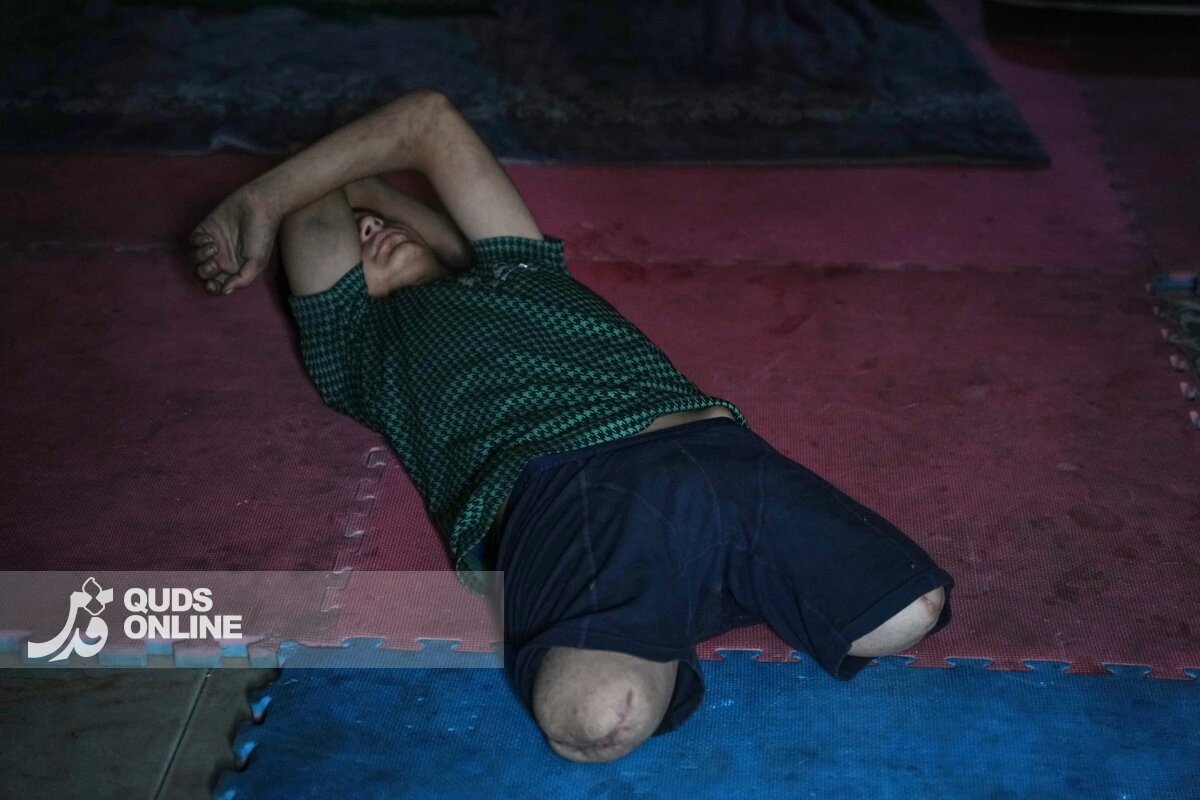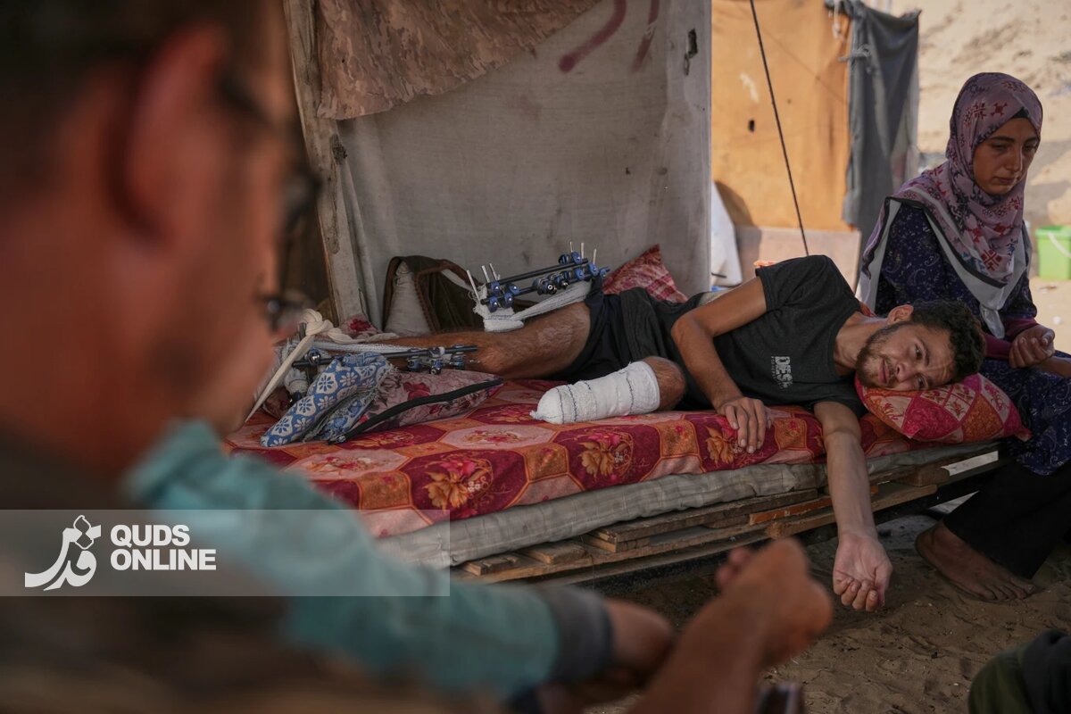 یاسین معروف، ۲۳ ساله، در چادری دراز کشیده است، پای چپش قطع شده و پای راستش پس از اصابت گلوله‌های اسرائیلی در ماه مه به شدت زخمی شده است. برادرش در همان حمله کشته شد و معروف در انجام حرکات اولیه مشکل دارد.