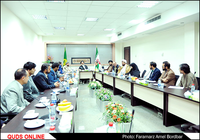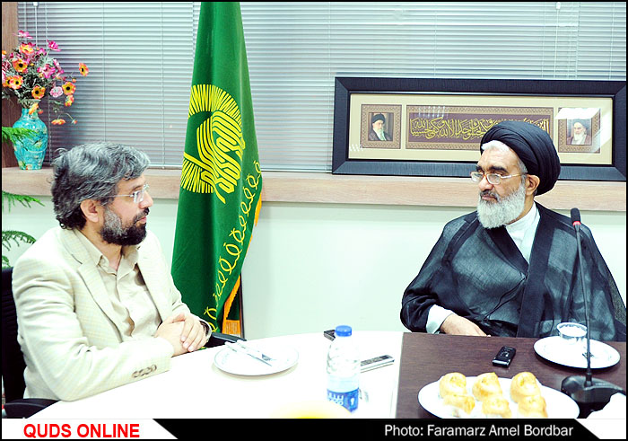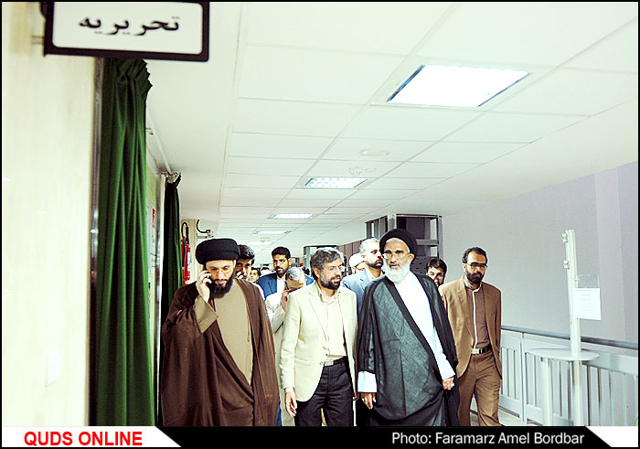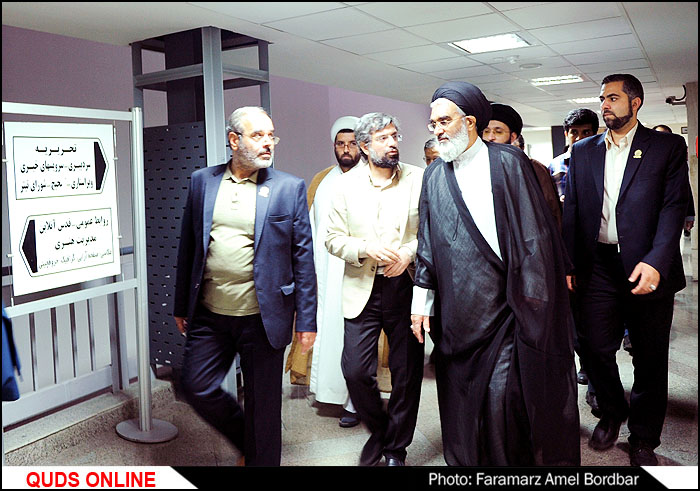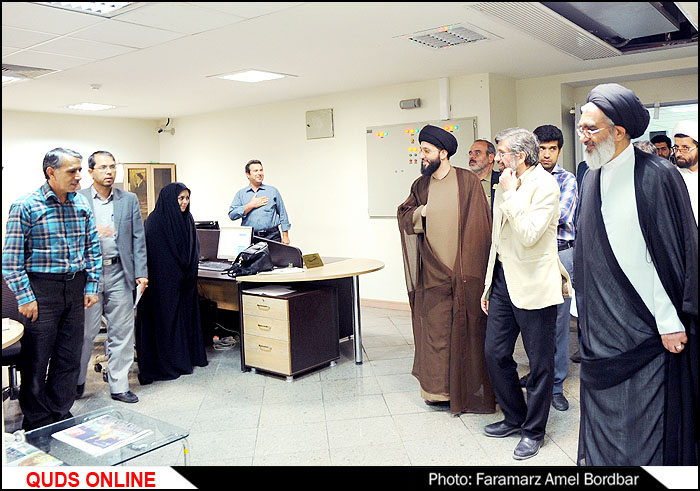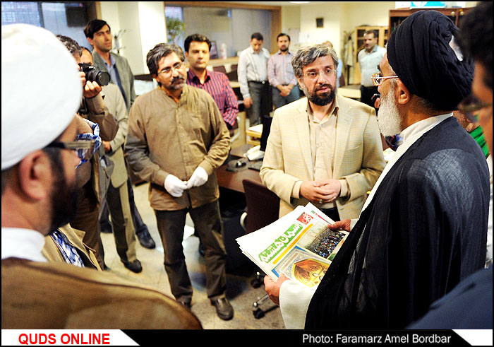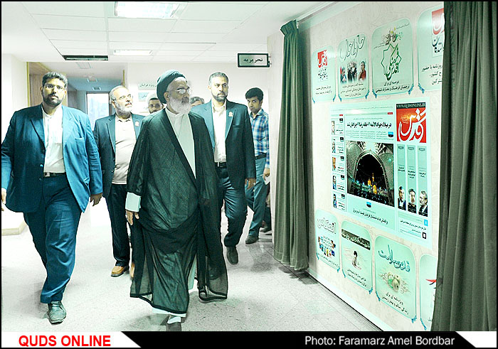 قدس آنلاین : آیت ا... سعیدی تولیت حرم مطهر حضرت معصومه(س) و همراهان از چاپخانه و تحریریه روزنامه «قدس» بازدید کردند و سپس در نشستی با مدیر عامل مؤسسه فرهنگی «قدس» و نیز شماری از خبرنگاران، دبیران گروه و کارکنان روزنامه حاضر شدند.