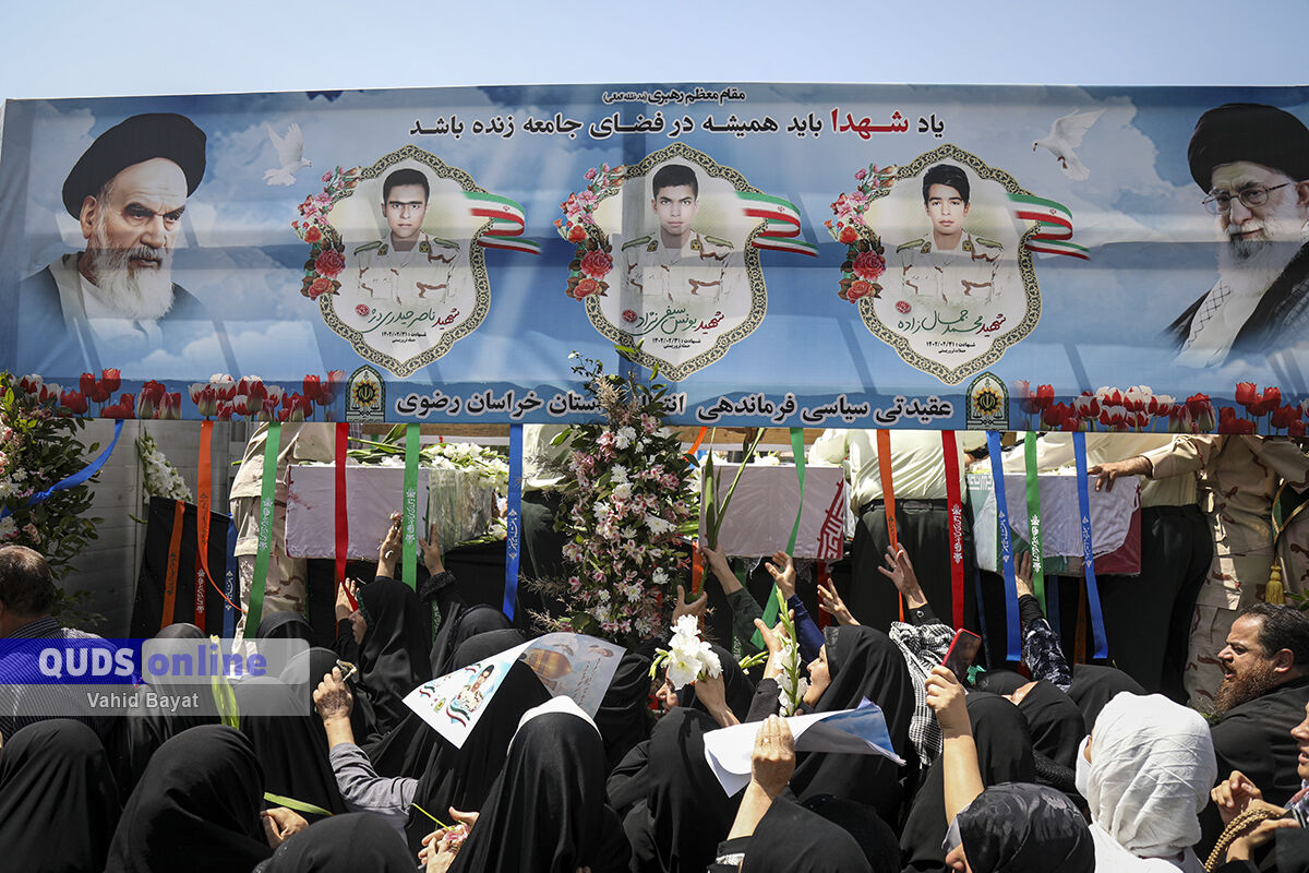 پیکر «ناصر حیدری دژ»، «محمد جمال زاده» و «یونس سیفی نژاد» از شهدای حادثه تروریستی سراوان، پیش از ظهر سه شنبه (۲ خرداد ۱۴۰۲) در مشهد تشییع شد.